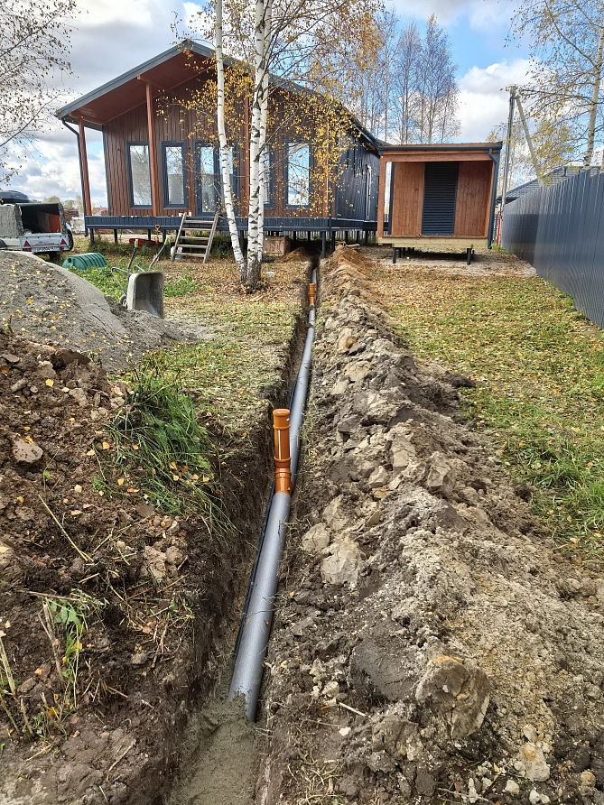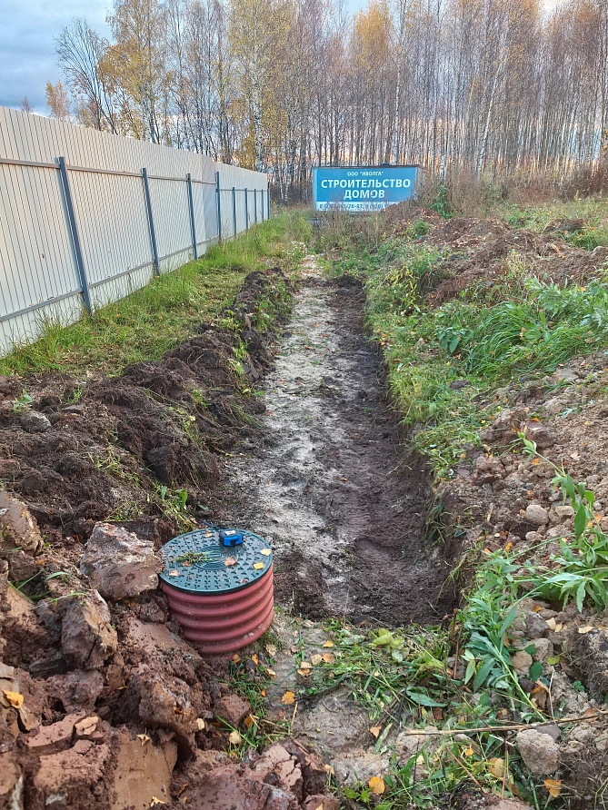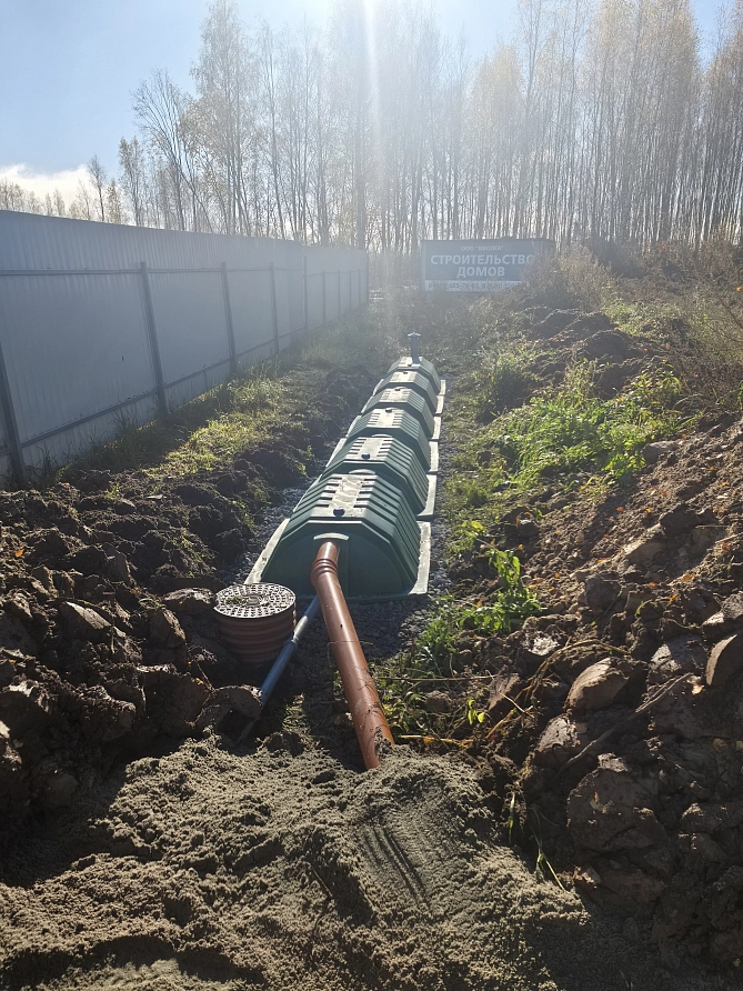 В Ярославской области деревне Алешково был выполнен монтаж септика "Крот 2,4" с дренажными тоннелями.